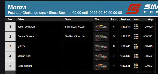Unsere Sim-Racing-Center Fast Lap Challenge.